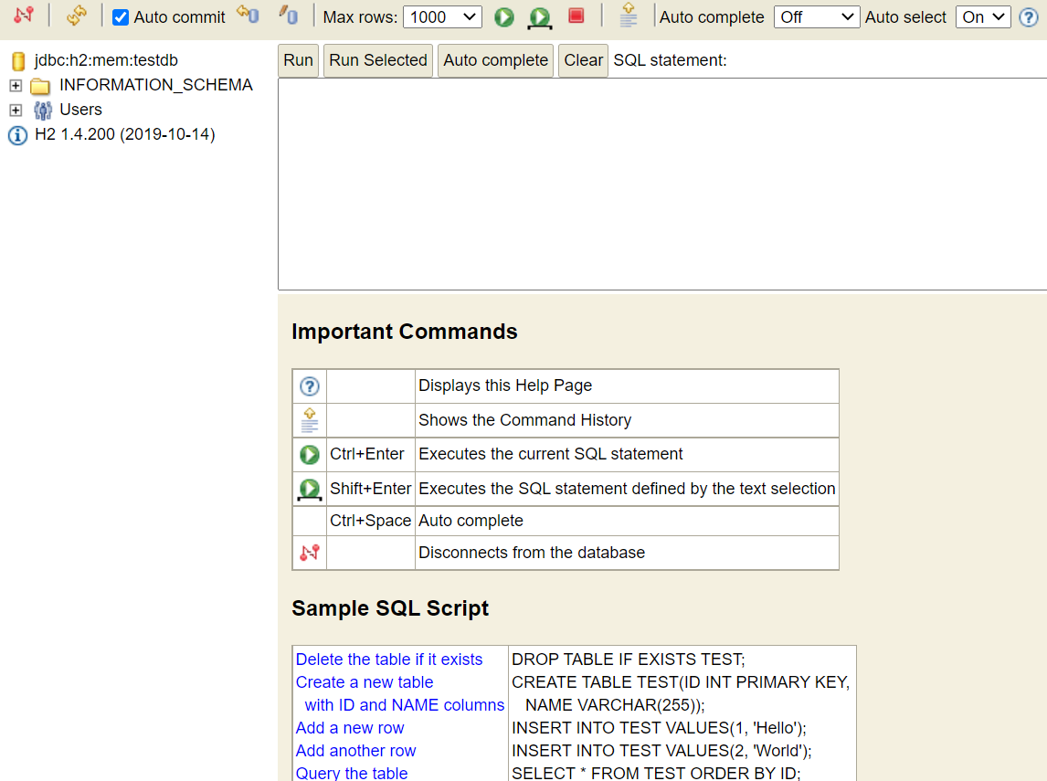 *JDBC URL은 jdbc:h2:mem:testdb 로 설정해주어야 Connect가 된다.