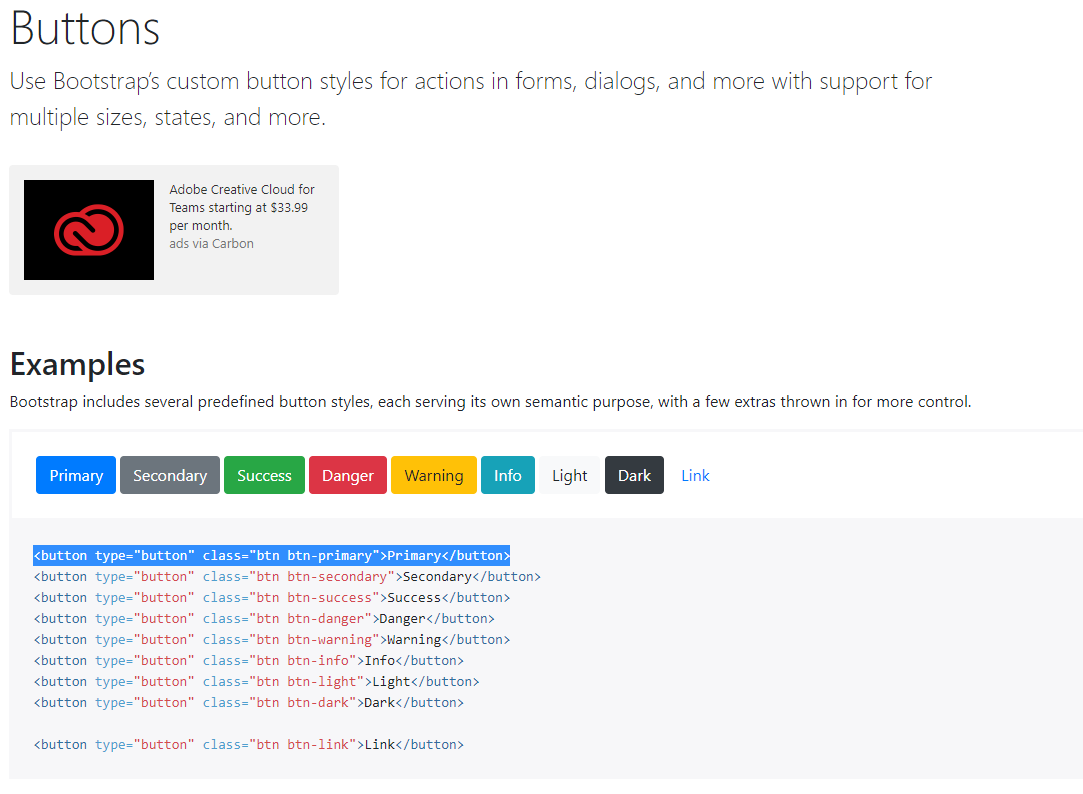 위의 사이트를 들어가서 왼쪽 메뉴에 buttons를 들어가준다.
