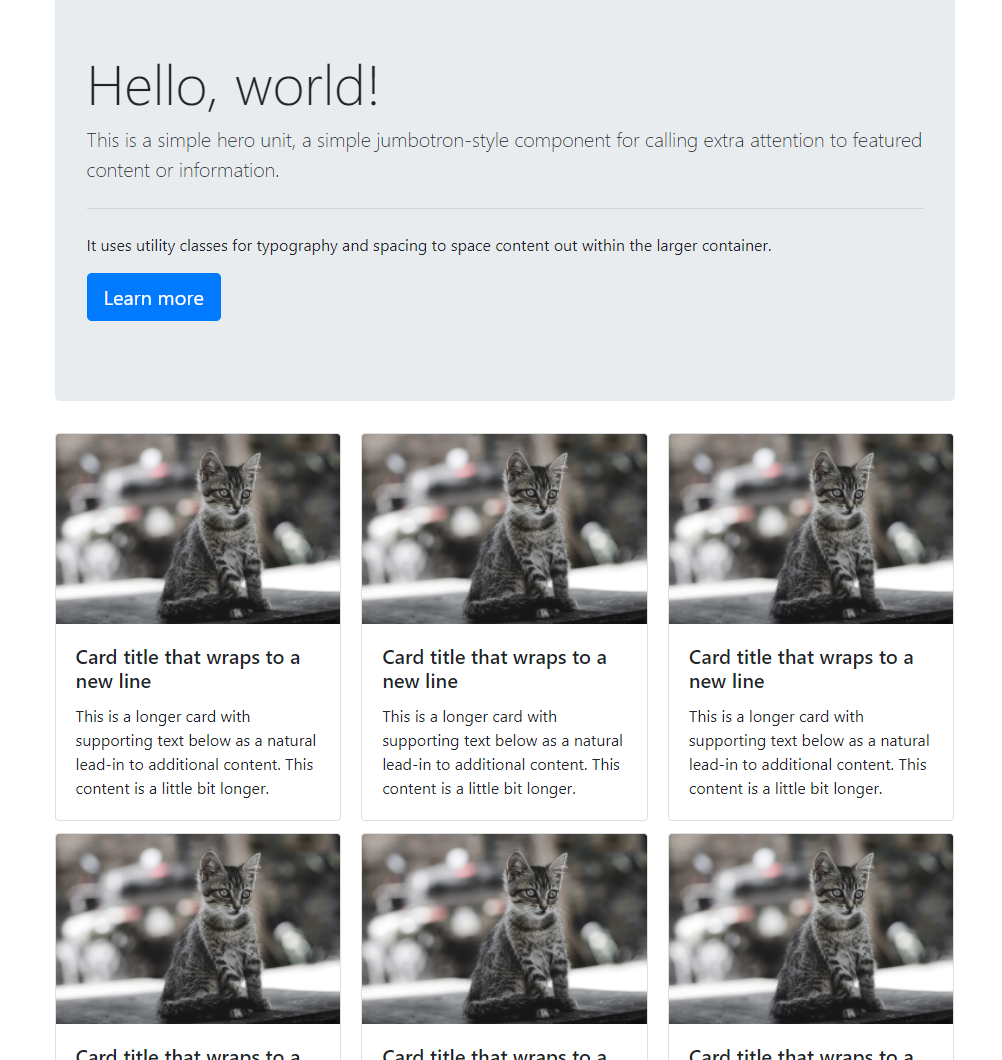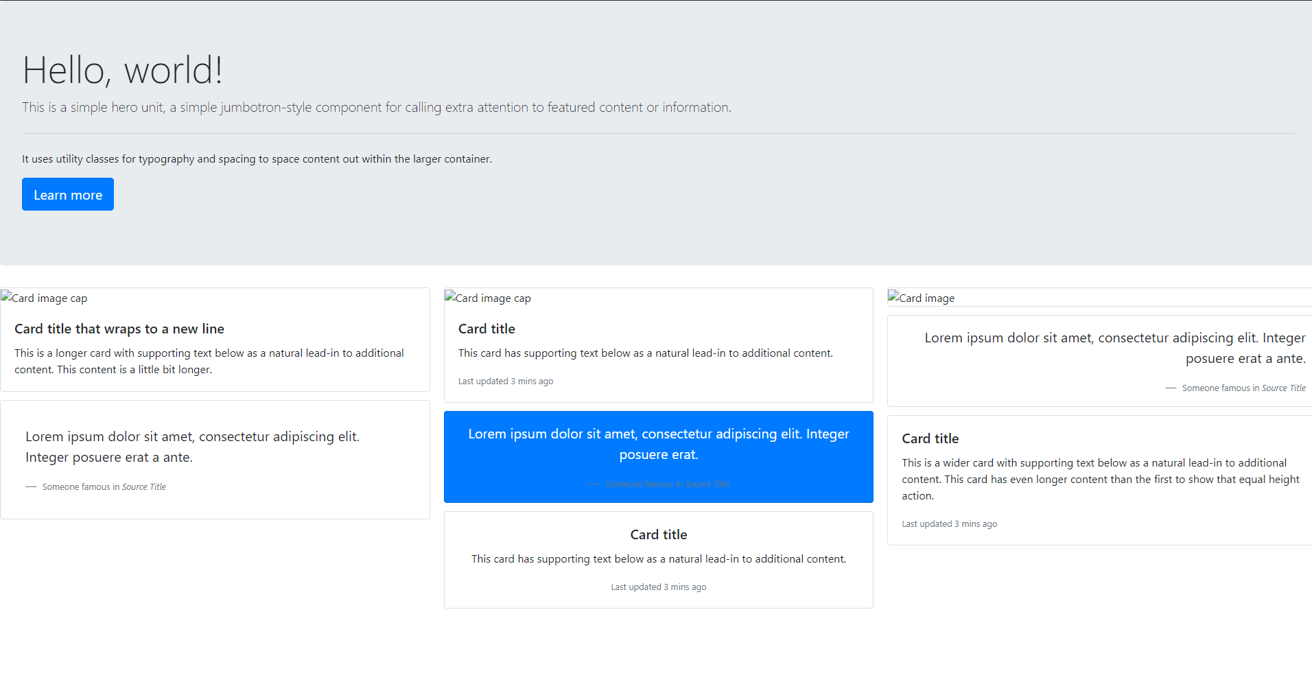 jumbotron과 card-columns를 그 안에 집어넣는다.