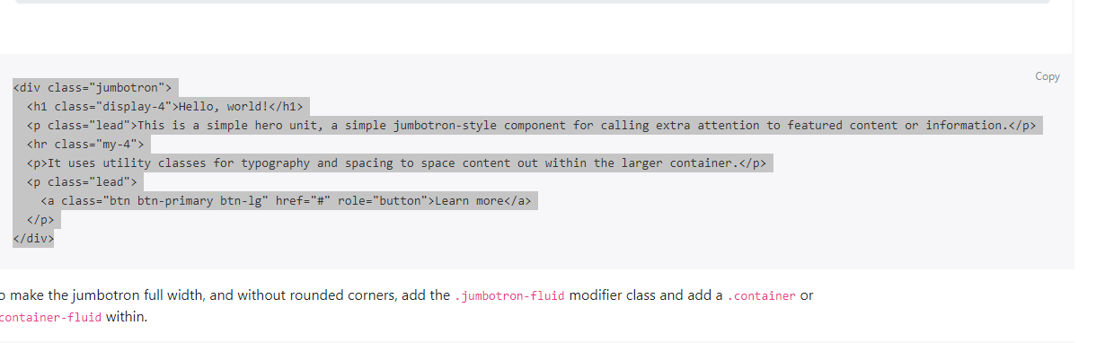 위 그림에 해당하는 코드를 copy해서 jombotron 밑에 붙여넣기 해준다.