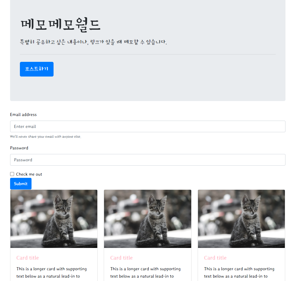 | 4. 부트스트랩이용해서 메모(카드) 페이지 만들기 (0) | 2021.08.20 |
