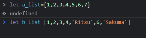 1. 리스트 선언 방법은 하나의 변수를 설정해줬을 때와 마찬가지로 let 함수를 이용해서 할 수 있다. let을 쓰고, 그 뒤에 리스트명을 설정해준 뒤에, 대괄호에 값을 넣으면 된다.