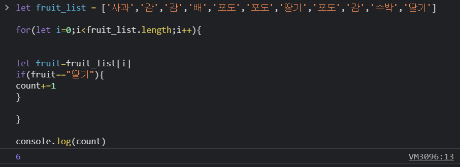 해당 함수를 처음 실행하게 되면 딸기는 2개 있으니까 count값이 2로 나와야 한다. 필자는 해당 함수를 3번 반복해서 쳐주었기 때문에 count값이 6으로 나오게 되었다.