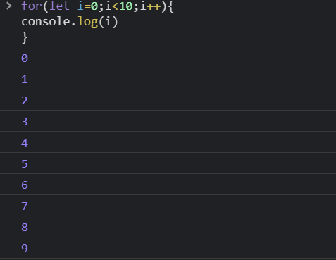 i라는 변수를 선언해서, i가 0일때부터 9일때까지 i의 값을 1씩 증가시키면서 i를 출력하는 반복문이다.