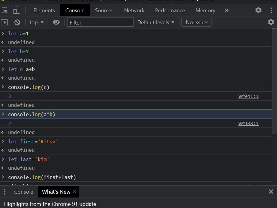 로 해두었을 때, a+b 값을 출력하고 싶다면, let c를 선언하고, a+b를 넣으면 된다.