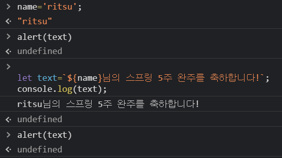 위와 같이 `` 안에 ${ 변수명 } 을 넣어준다.