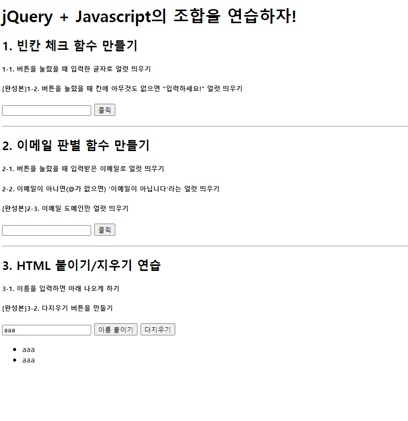 <h1>jQuery + Javascript의 조합을 연습하자!</h1>