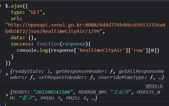 url: "http://openapi.seoul.go.kr:8088/6d4d776b466c656533356a4b4b5872/json/RealtimeCityAir/1/99",