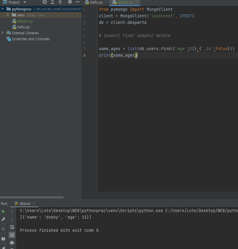 -pymongo 기본코드와 insert 코드
