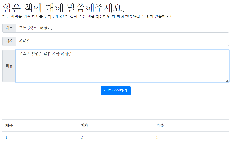 * API 만들고 사용하기- 제목, 저자, 리뷰 정보 저장하기(Create->POST)