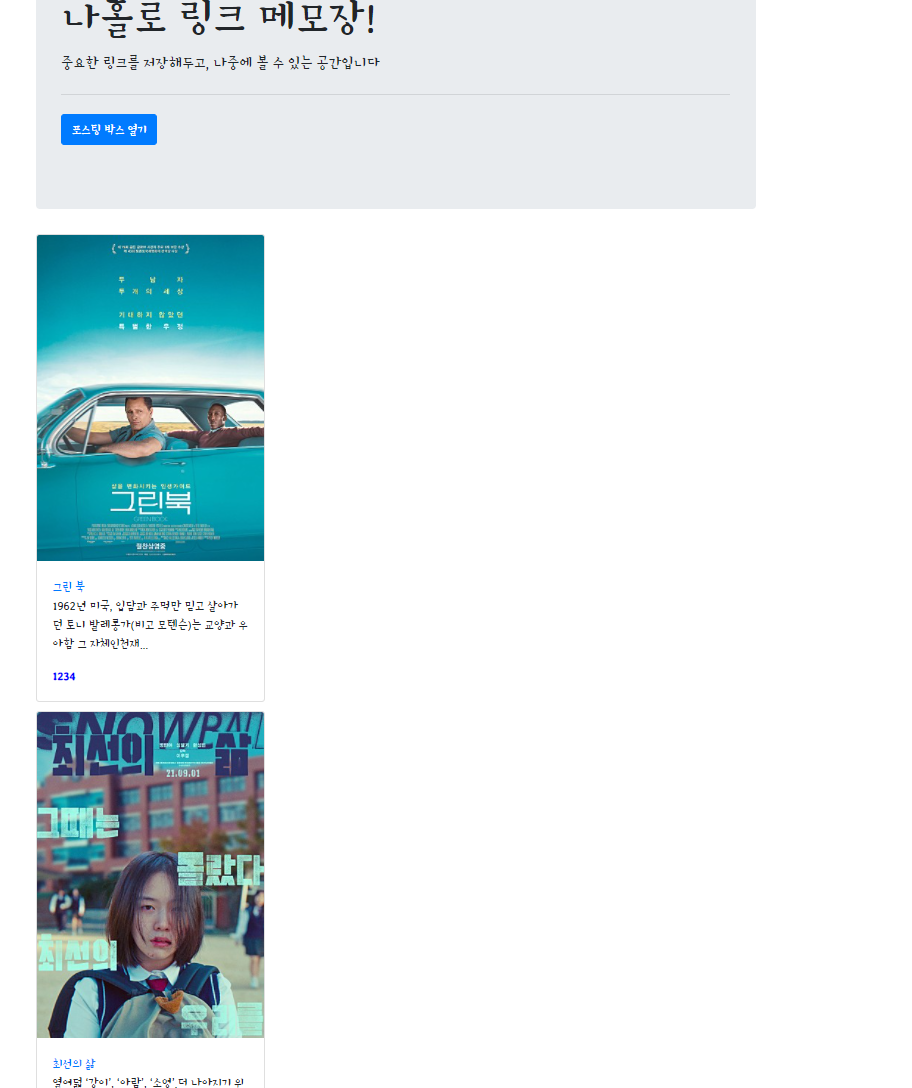 <h1 class="display-4">나홀로 링크 메모장!</h1>