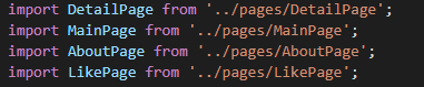 StackNavigator.js 상단에 어바웃페이지와 라이크페이지를 추가해준다.