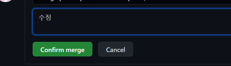 커밋 메시지를 수정하거나 할 수 있다. 문제가 없으면 merge를 confirm한다.