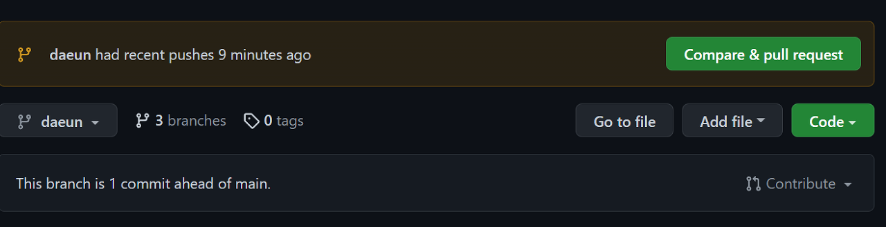 //해당 브랜치에 푸시합니다. 협업을 할 때는 절대 main에 바로 푸시하면 안 됩니다!