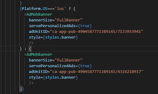 Platform.OS==='ios' ? AdMobInterstitial.setAdUnitID("ca-app-pub-4904587771389145/4842191892"):AdMobInterstitial.setAdUnitID("ca-app-pub-4904587771389145/4288298756")