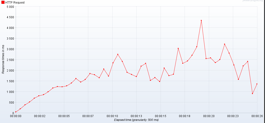 시간이 지날수록 응답시간이 더 커지는 것을 확인할 수 있다.