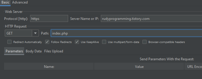 위와 같이 Protocol에 http혹은 https를 설정하고, Server Name or IP에 도메인 이름을, Path에 나머지 URL을 입력해준다.