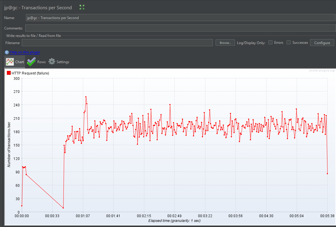 Transactions per Second Download This graph shows the number of transactions per second for each sampler. It counts for each seconds the number of finished transactions. Compared to the previous version (0.3.0), it will now also display the failed transact