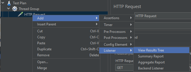 HTTP Request->Add->Listener->View Result Tree와 Summary Report를 이용해 테스트 결과를 확인할 수 있다.
