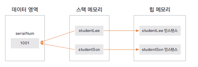 - 인스턴스가 생성될 대 만들어지는 변수가 아닌, 처음 프로그램이 메모리에 로딩도리 때 메모리를 할당한다.